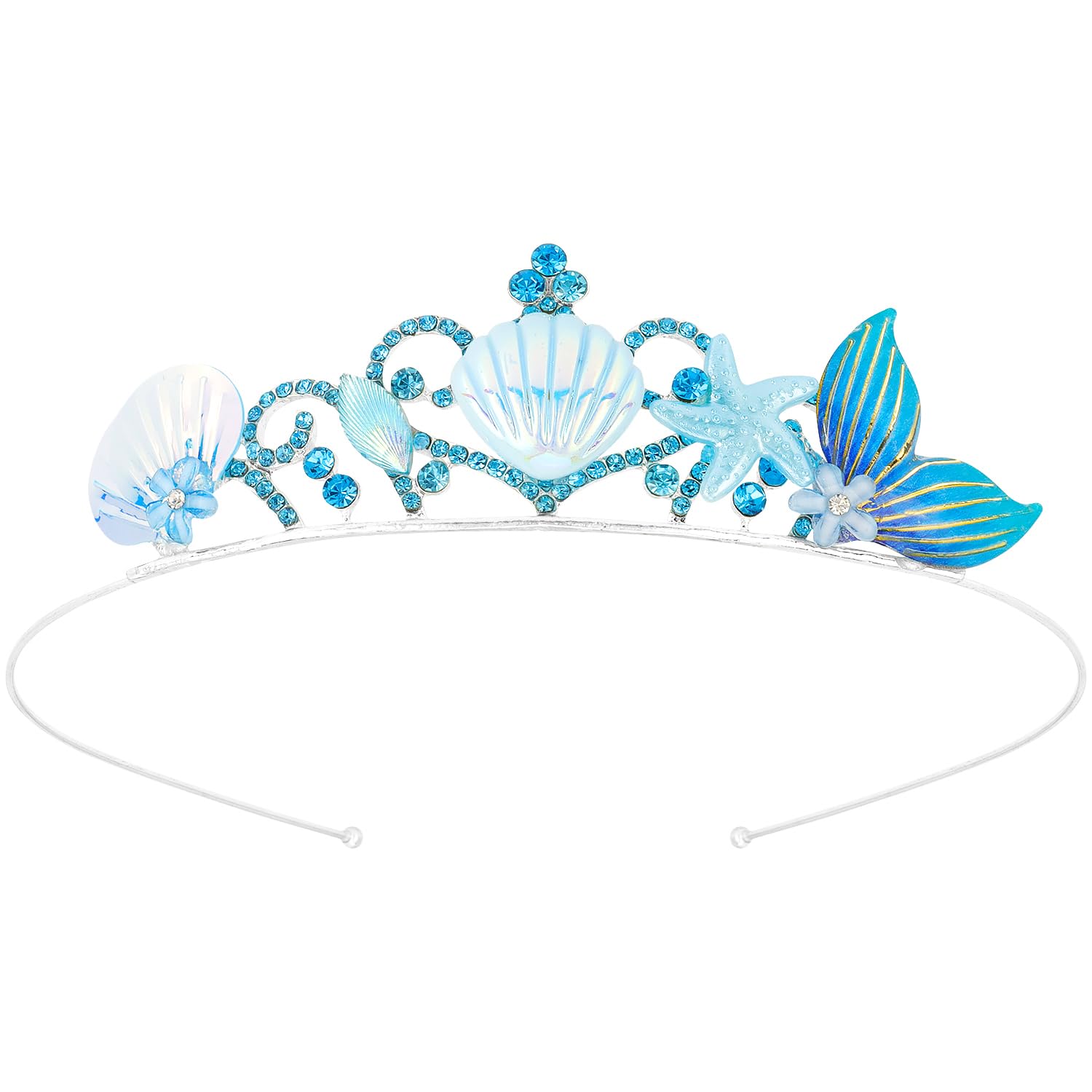 Vasarīga jūras tēmas diadēma ar ziliem kristāliem. Perfekta pludmales pasākumiem.